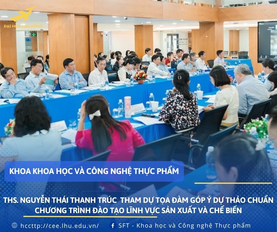 Tham dự buổi tọa đàm có PGS.TS. Nguyễn Anh Dũng – Phó Vụ trưởng Vụ Giáo dục Đại học, GS.TS. Trang Sĩ Trung, Chủ tịch Hội đồng thẩm định Chuẩn chương trình đào tạo, cùng lãnh đạo, chuyên gia và đại diện hơn 60 cơ sở giáo dục đại học trên cả nước. Đại diện Trường Đại học Lạc Hồng, ThS. Nguyễn Thái Thanh Trúc, Trưởng bộ môn Công nghệ thực phẩm, Khoa Khoa học và Công nghệ Thực phẩm đã tham dự và đóng góp ý kiến về chuyên môn.
