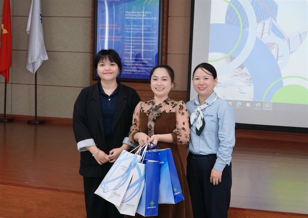 Trong khuôn khổ buổi tham quan, Lãnh đạo bộ phận nhân sự của công ty đã có buổi giao lưu, chia sẻ thân mật với các bạn sinh viên. Tại đây, các bạn sinh viên được giới thiệu tổng quan về quá trình hình thành – phát triển của Hyosung, văn hóa doanh nghiệp Hàn Quốc, môi trường làm việc đa quốc gia cũng như nhu cầu tuyển dụng nhân sự biết tiếng Hàn trong thời gian tới. Phía công ty cũng bày tỏ sự quan tâm và đánh giá tích cực đối với sinh viên ngành Hàn Quốc học Trường Đại học Lạc Hồng.