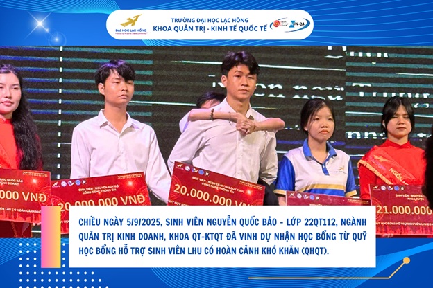 👉 Một lần nữa, xin chúc mừng Nguyễn Quốc Bảo – sinh viên năm cuối ngành Quản trị Kinh doanh đã xuất sắc nhận được học bổng QHQT. Câu chuyện nghị lực của Bảo chắc chắn sẽ là nguồn cảm hứng mạnh mẽ, lan tỏa đến cộng đồng sinh viên LHU