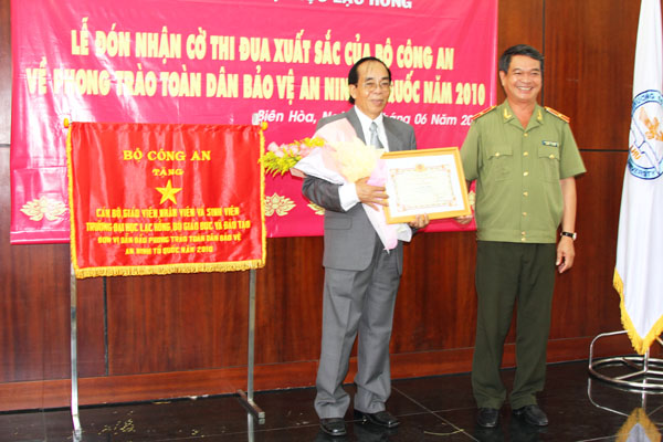At the ceremony, Major General Nguyen Van Khanh presented the Emulation Flag of the Ministry of Public Security to teachers, staff, and students of Lac Hong for their achievements as the leading unit in the movement “For the national security 2010”. The Dong Nai Police also awarded certificate of merit for Dr. Tran Hanh in recognition of his outstanding contributions to the movement.