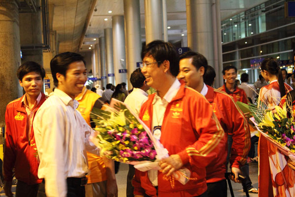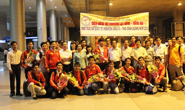 Afternoon of August 30, representatives of Dong Nai province and leaders of Lac Hong University along with Robocon lovers warmly welcomed Robocon team coming back from AUB Asia Pacific Robot Contest held in Thailand. After five days of competing in Thailand, the team has arrived in Tan Son Nhat airport in Ho Chi Minh City in expectation and welcome of all people.