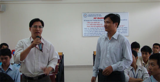 Speaker group included Le Phuong Long, MA – an alumnus of National Kaohsiung University of Applied Sciences, school year 2007-2009. Le Phuong Truong, MA – an alumnus of Southern Taiwan University of Technical, school year 2008 - 2010, and Nguyen Vu Quynh, MA - a graduate student of Southern Taiwan University of Technical, school year 2010 - 2013.