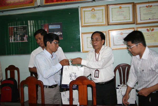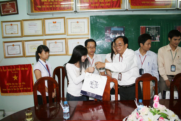 Dr. Tran Hanh presented souvenirs to the scholarship receivers this year.