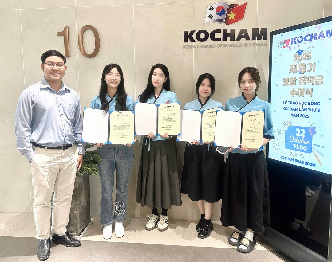 Học bổng KOCHAM được trao cho sinh viên năm 3 và năm 4 có thành tích học tập tốt, tinh thần cầu tiến và nghị lực vượt khó. Đây là một trong những hoạt động thường niên mang ý nghĩa lớn lao, nhằm khích lệ tinh thần học tập và hỗ trợ sinh viên Việt Nam đang theo đuổi ngành Hàn Quốc học.Đa