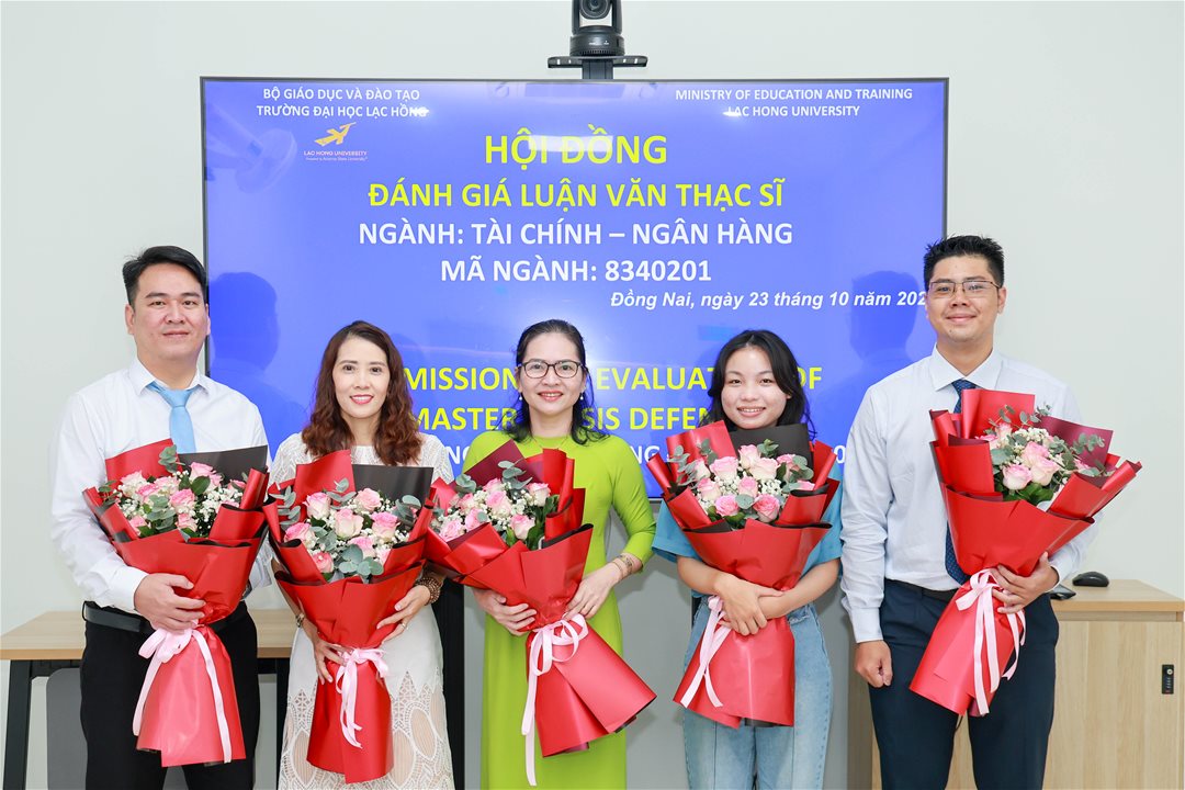 Ngày 23 tháng 10 năm 2025, tại phòng B107 (Phòng tiến sĩ) cơ sở 1 của Trường Đại học Lạc Hồng (LHU), Hội đồng đánh giá luận văn thạc sĩ chuyên ngành Tài chính - Ngân hàng đã tổ chức buổi bảo vệ luận văn cho 05 học viên. Buổi lễ diễn ra trong không khí trang trọng và đầy tính học thuật, với sự tham gia của các nhà khoa học, giảng viên uy tín và các chuyên gia đầu ngành.