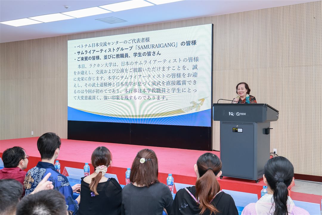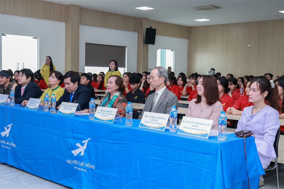 Sáng ngày 11/12/2025, Trường Đại học Lạc Hồng phối hợp cùng Trung tâm Giao lưu Việt – Nhật long trọng tổ chức chương trình giao lưu văn hoá với Đoàn Samurai Nhật Bản – SAMURAIGANG tại phòng A301, cơ sở 1. Buổi giao lưu có sự hiện diện của ông Sho Shiratori và ông Nguyễn Minh Tuấn, cùng các nghệ sĩ Samurai thuộc đoàn SAMURAIGANG. Về phía Nhà trường, chương trình vinh dự đón tiếp NGƯT. TS. Nguyễn Thị Thu Lan – Phó Hiệu trưởng, TS. Nguyễn Hữu Nghị – Trưởng Khoa Đông Phương học, ThS. Nguyễn Thị Như Thường – Phó Trưởng khoa Đông Phương học, ThS. Trần Minh Thùy Dương – Trưởng ngành Nhật Bản học, cùng quý thầy cô giảng viên và sinh viên tham dự.