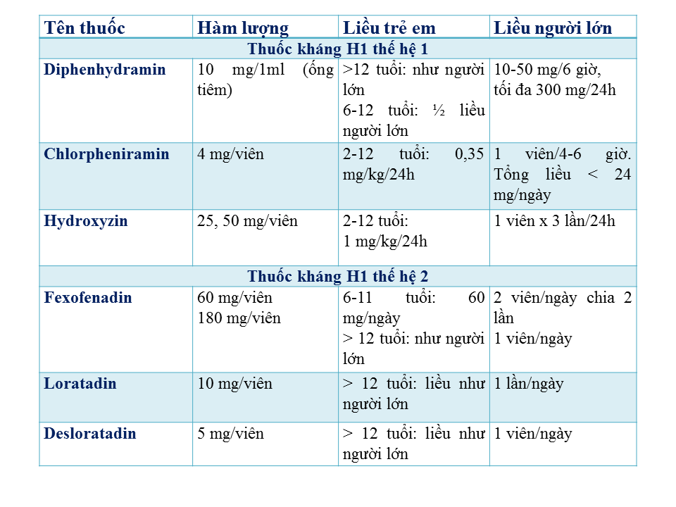 Bảng 1. Liều thông thường của một số thuốc kháng Histamin H1