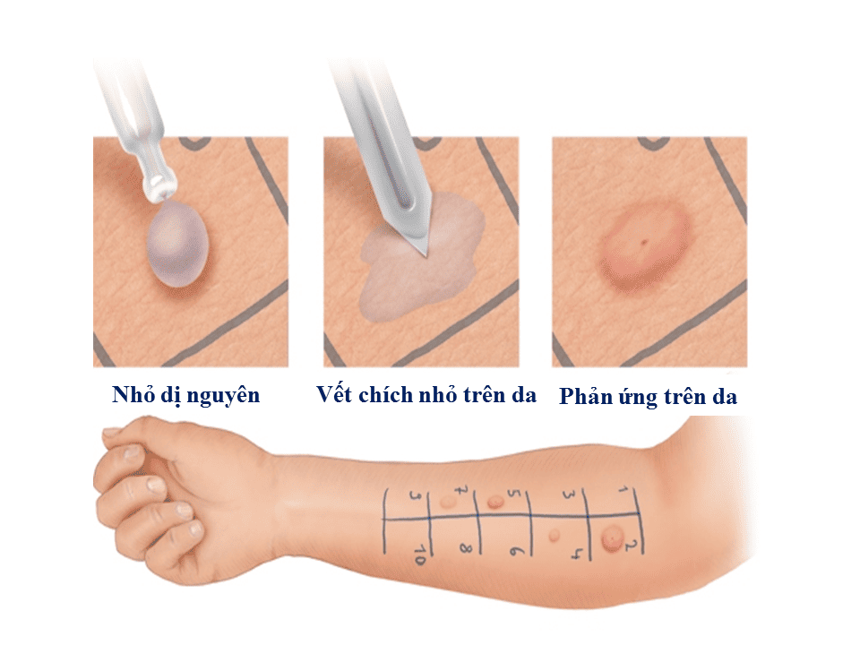 Test lẩy da (Prick test) với dị nguyên thức ăn