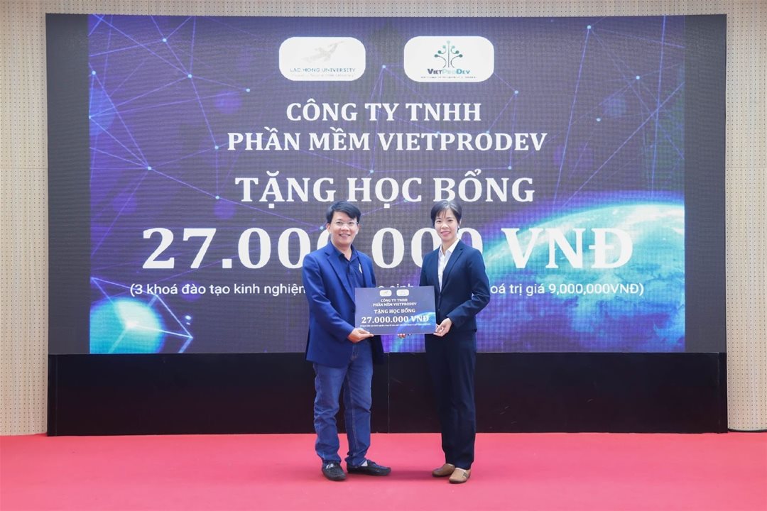Specifically, VietProDev Technology Co., Ltd. awarded 03 project-based training courses, with a total value of 27 million VND, dedicated to students in Information Technology and Artificial Intelligence.