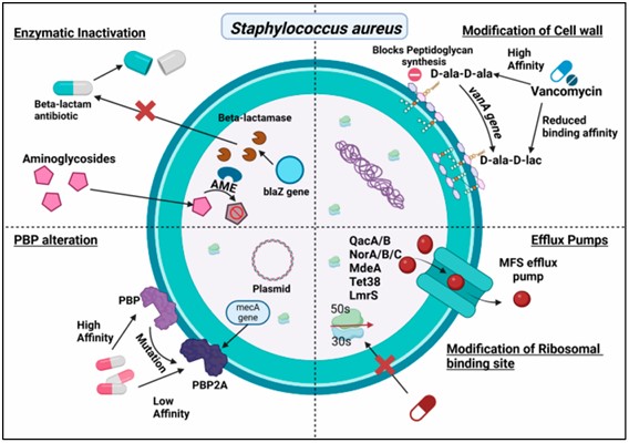 Figure 1. Antibiotic resistance mechanisms of S. aureus