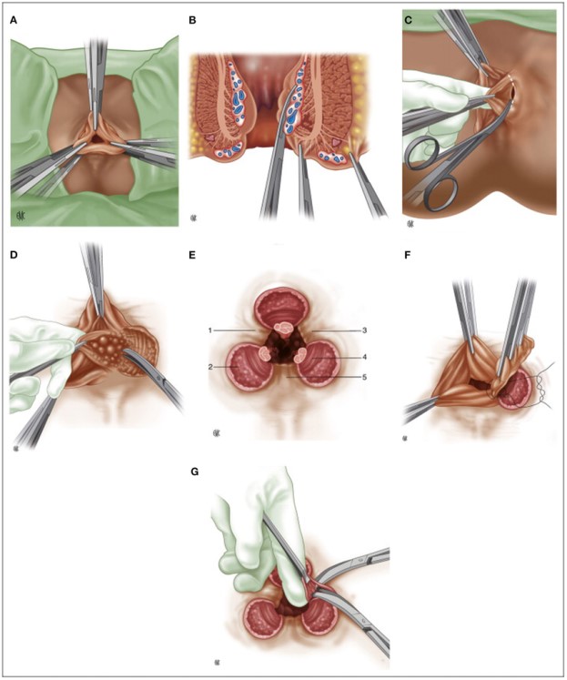 Figure 3. Surgical treatment of hemorrhoids: Milligan–Morgan technique.